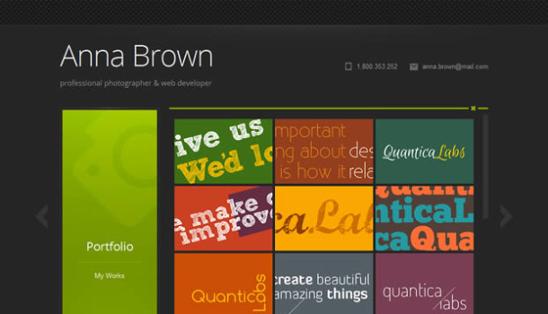 Los temas que incluyen una galería o un portfolio son especialmente interesantes para los perfiles artísticos (fotografía, diseño, etc.) o técnico (páginas web, software, arquitectura) ya que podemos mostrar visualmente mediante fotografías, bocetos o capturas de pantalla, trabajos reales realizados y que no se incluyen en el curriculum, y que mostraríamos posteriormente en la entrevista.