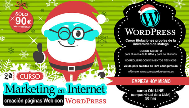 Aprovecha las vacaciones de Navidad, el curso on-line de WordPress de la Universidad de Málaga te permitirá aprender a crear páginas webs de forma fácil y sin necesidad de conocimientos técnicos.